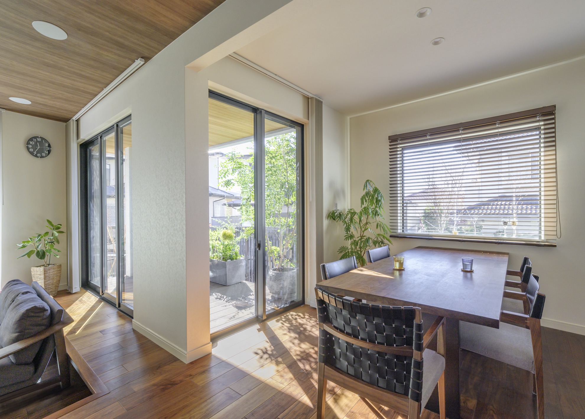 互いに好きな日常が満喫できる、ゆとりの二世帯住宅緑豊かなデッキに面した心地よいダイニング