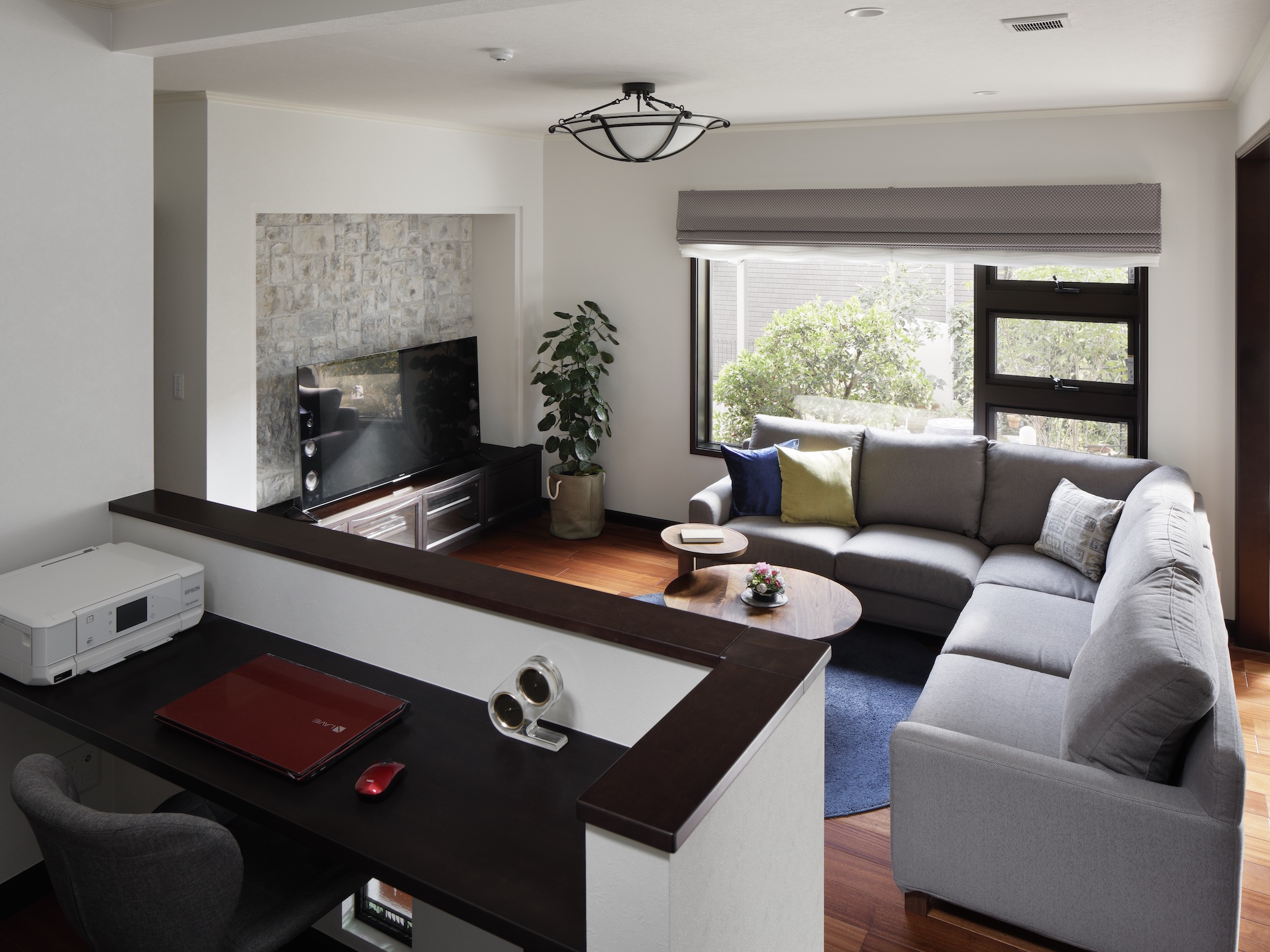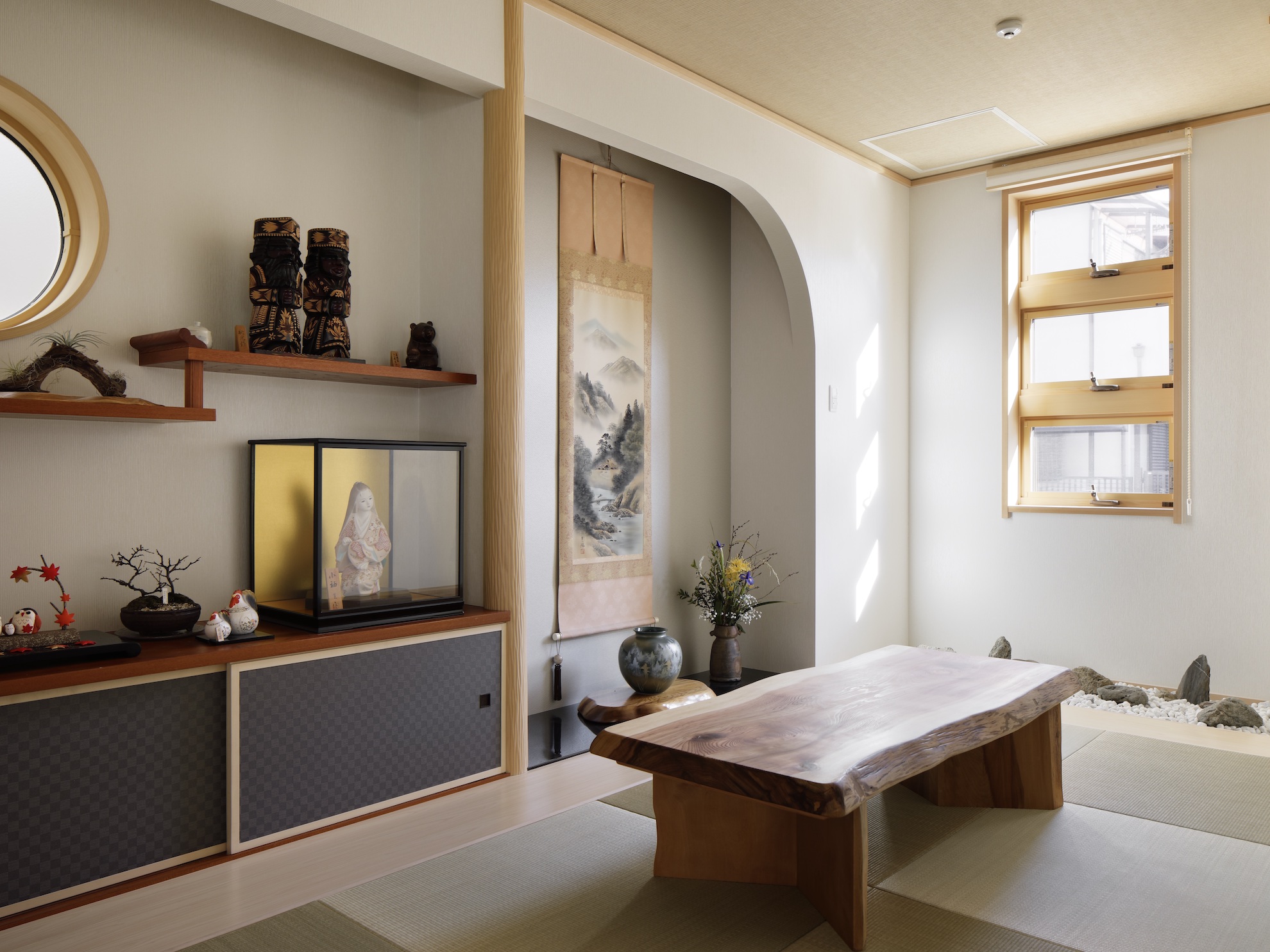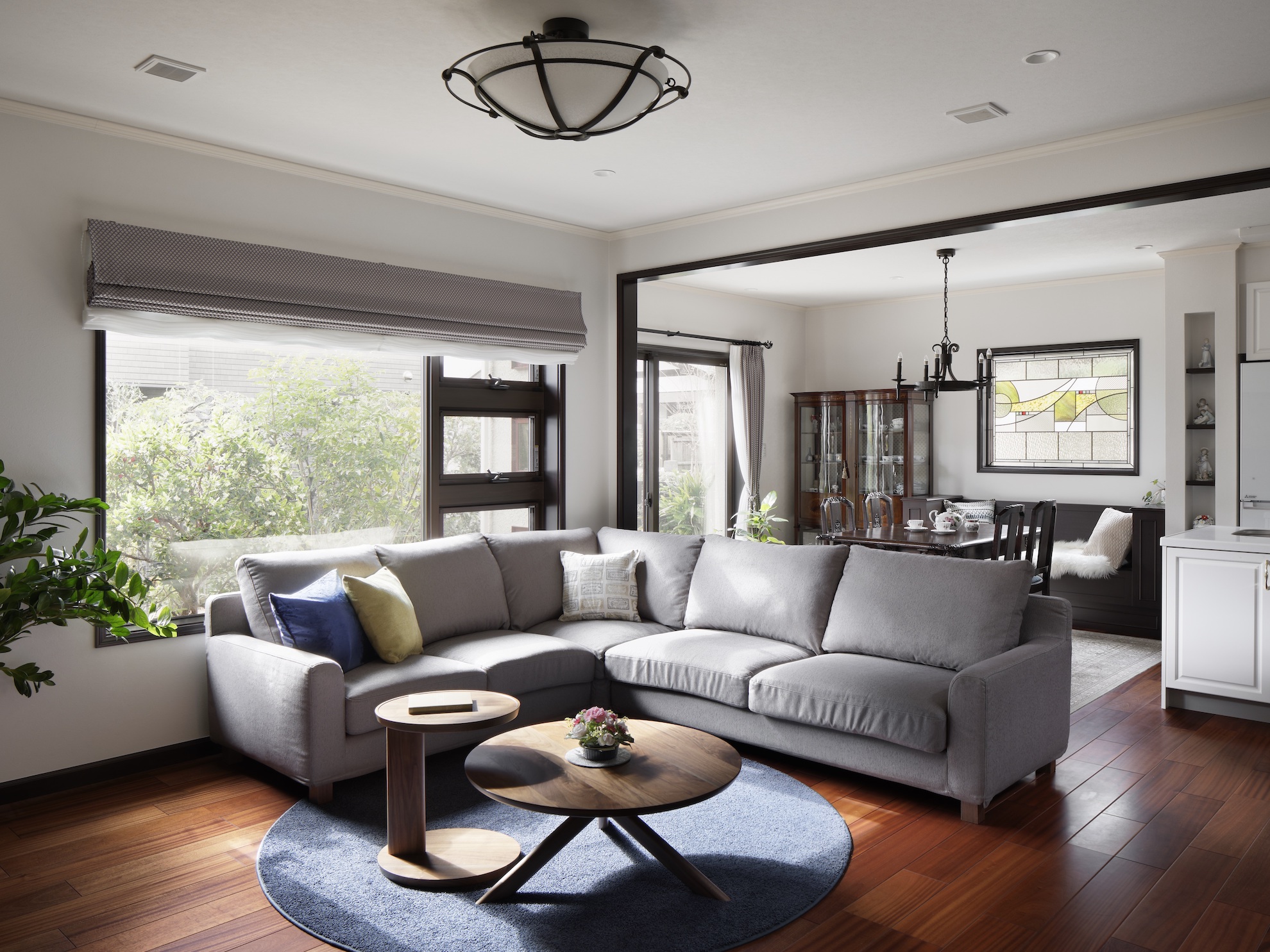 奥様が買い揃えていた、お気に入りのヨーロッパのアンティーク家具。それらの家具の風合いや優雅なフォルムを引き立たせる空間づくりを徹底。