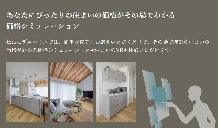 松山モデルハウスに三井ホームセレクトのプラン相談や価格シミュレーションがその場で体験できる