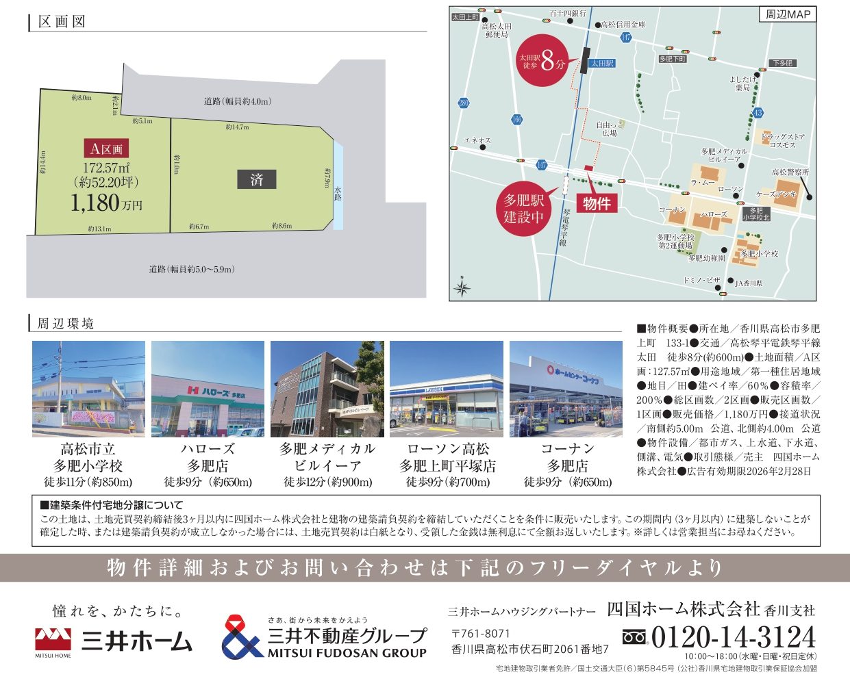 宅地 高松市多肥上町(ことでん多肥駅) 住宅用地 建築条件付き